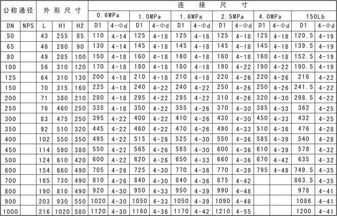 主要外形連接尺寸(對夾式)