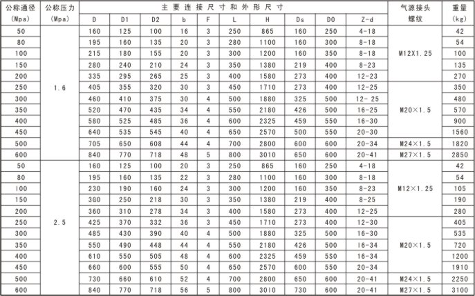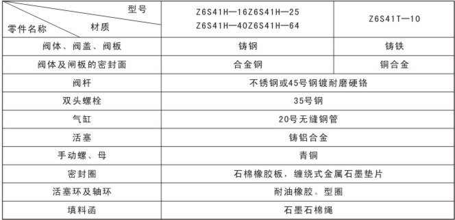 注: Z6S41T一10、Z6S41H一16、Z6S41H一25、Z6S41H一40、Z6S41H一64閘閥的氣缸單程耗氣量(以壓縮空氣體積計算)