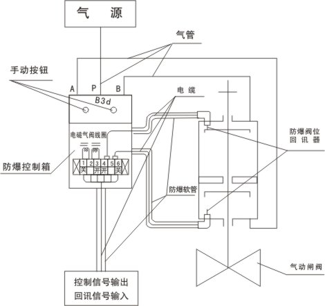 2、上活塞行至行程上端可頂上上回訊器,使之發訊;下活塞行之行程下端可頂下下回訊器,使之發訊,以作為閘閥開閉信息在中央操作室的模擬儀表盤上進行顯示。