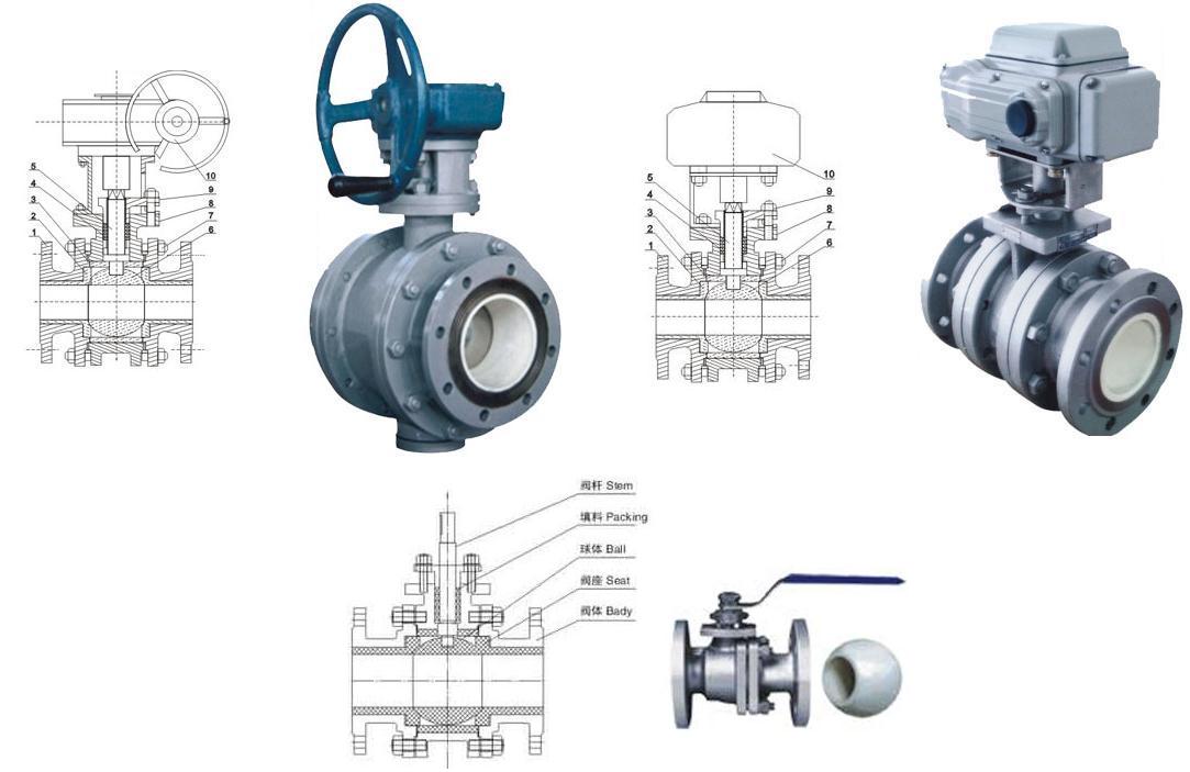 與普通的襯四氟球閥結(jié)構(gòu)相同,只是將球芯換成更耐腐蝕、耐磨損的結(jié)構(gòu)陶瓷球芯。