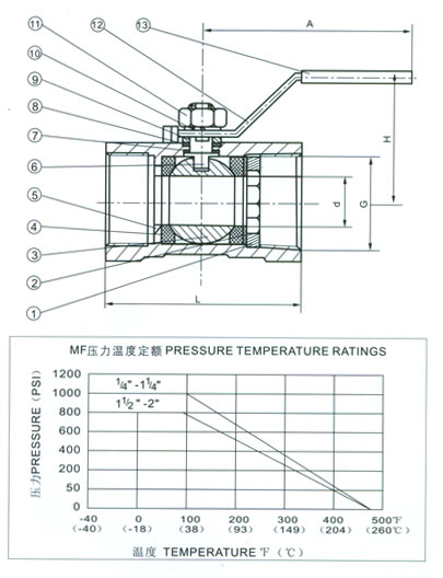 溫度范圍:MF-40~232℃ -40~500℉