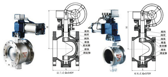 2、V型切口球芯與閥座間有剪切作用,特別適用于含纖維、微小固體顆粒、料漿等介質(zhì);