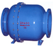 微阻球形止回閥 采用橡膠包皮球為閥瓣,在介質的作用T可在閥體內的滑道上滾動從而打開或關閉閥門。流量大流阻損失小密封性能好消聲關閉可減小水擊波。水平或垂自安裝均可??稍掠诶渌?、熱水、工業及生活污水等管網的水泵出口防止介質倒流。